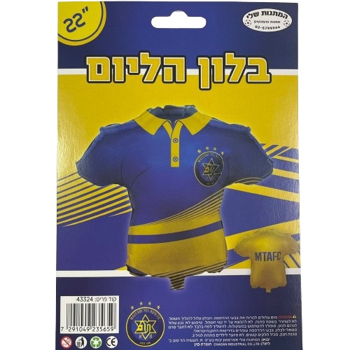 בלון מיילר 26” חולצת כדורגל צהוב כחול₪20.00 + כמות של בלון מיילר 26'' חולצת כדורגל צהוב כחול - הוספה לסל