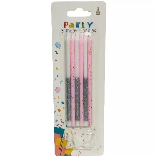 6 נרות ארוכים ורוד גליטר חצי לבן וגליטר כסף₪7.90 + כמות של 6 נרות ארוכים ורוד גליטר חצי לבן וגליטר כסף - הוספה לסל