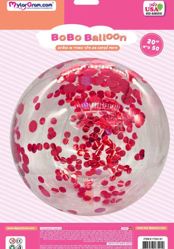 בלון BOBO שקוף עם מילוי קונפטי אדום