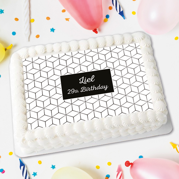 תמונה אכילה מבצק סוכר ליום הולדת וחגיגות בעיצוב גאומרטי שחור לבן