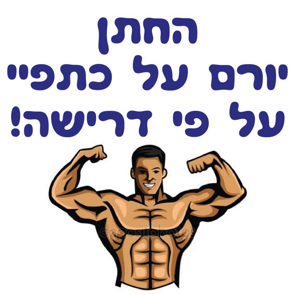 חולצת חתונה בעיצוב: החתן יורם על כתפיי על פי דרישה
