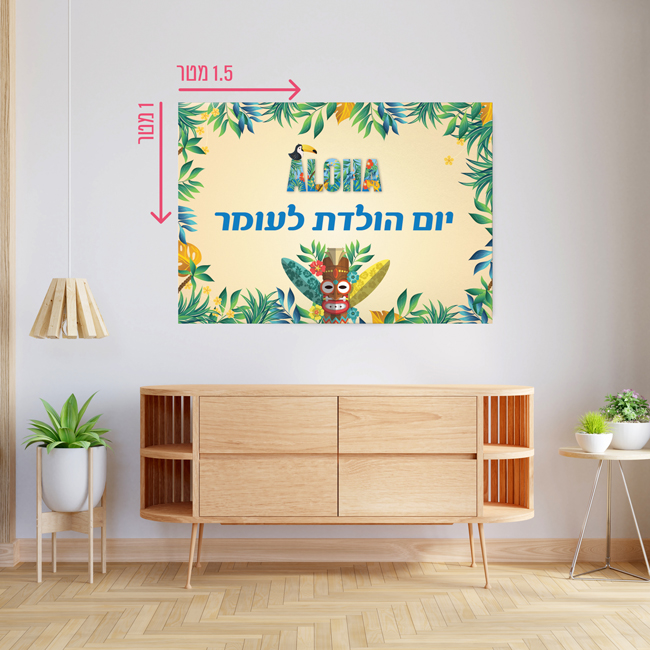 פלייסמנט מעוצב אישי עם רקע טרופי וכיתוב אלוהה