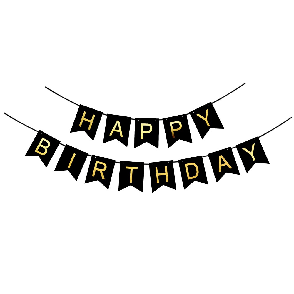 שרשרת דגלים בצבע שחור עם כיתוב happy birthday בצבע זהב מבריק