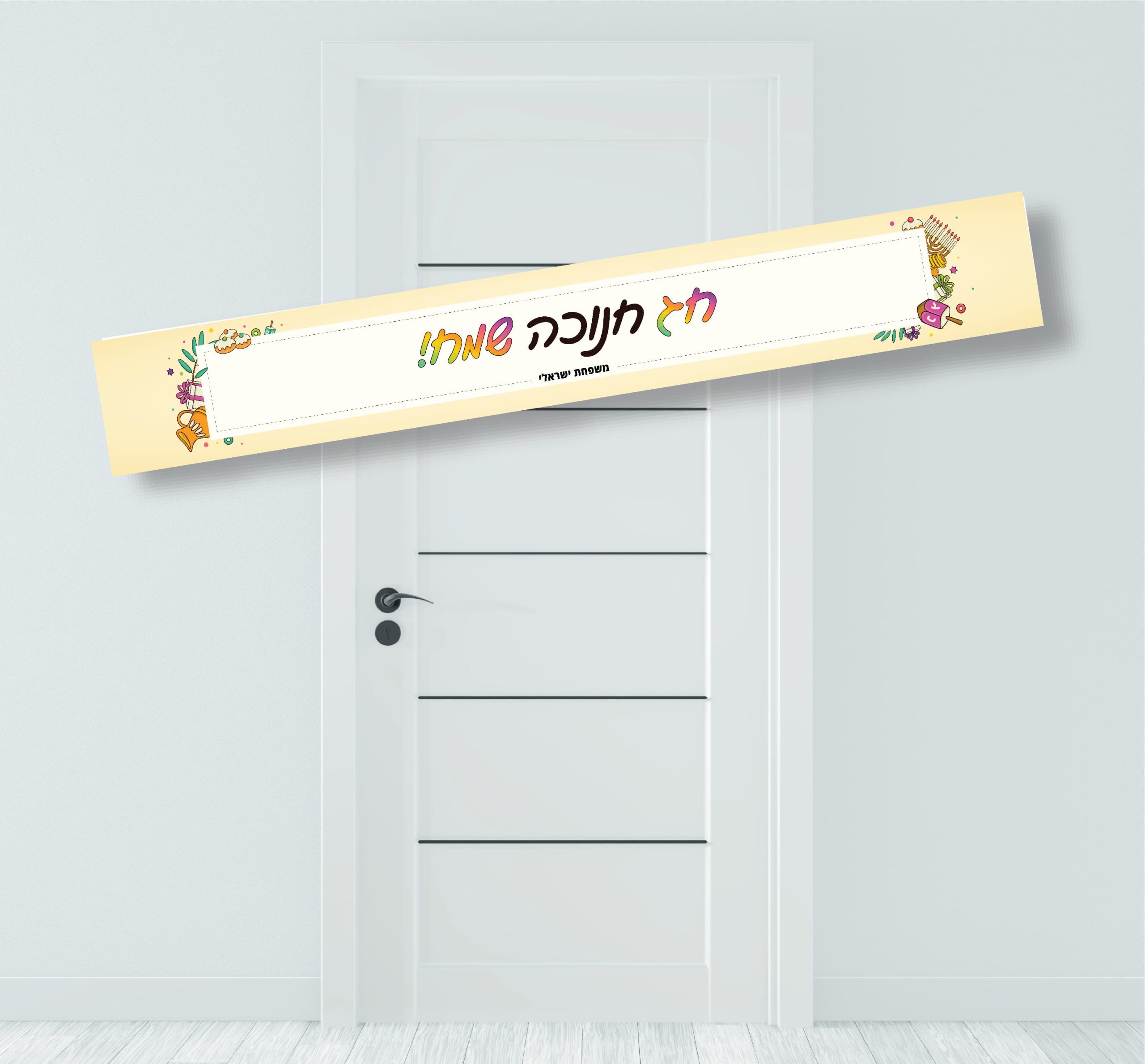 באנר לתלייה בעיצוב חנוכה שמח עם סמלי חנוכה