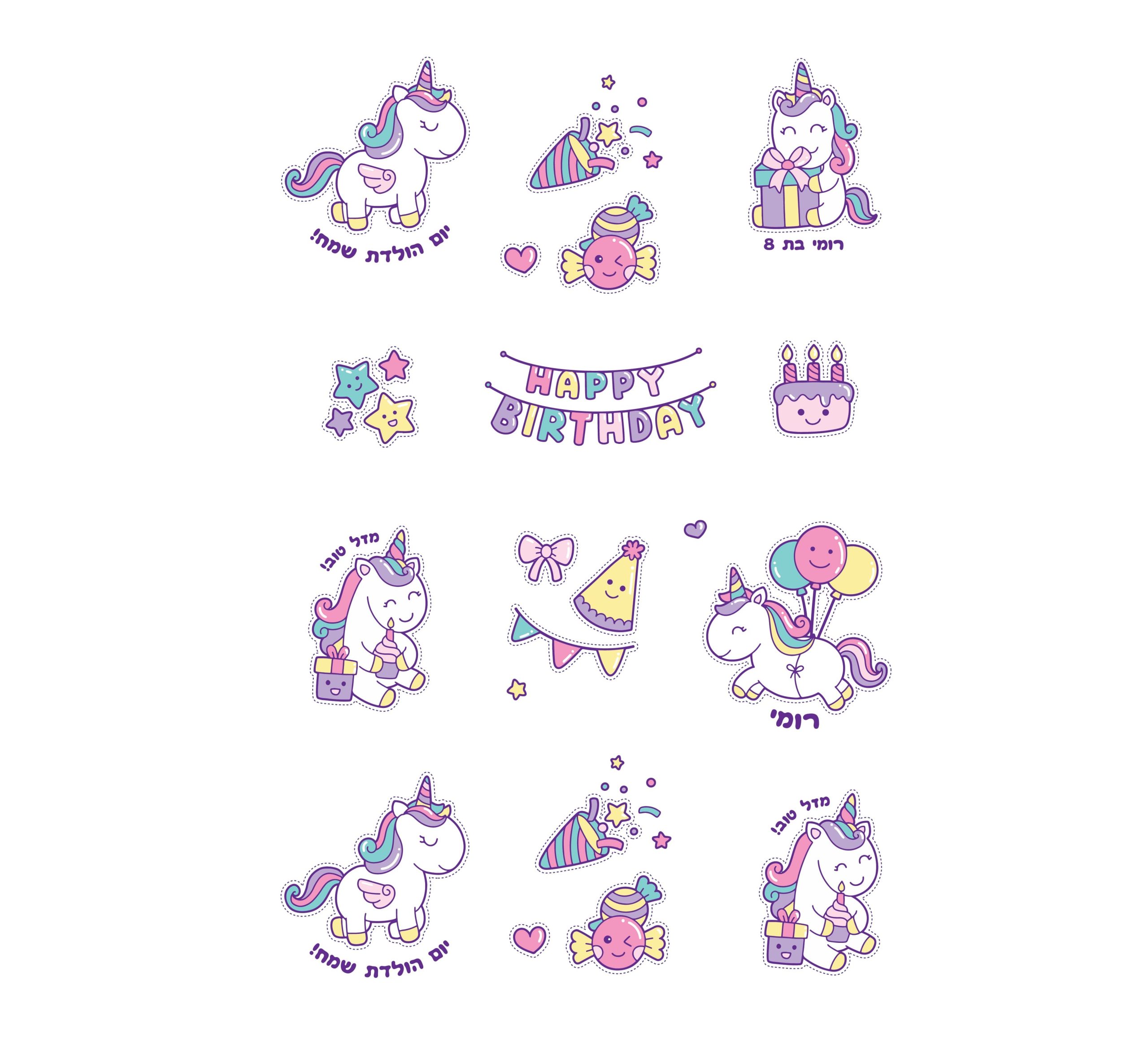 דף עם 20 קעקועי חד קרן במיתוג אישי