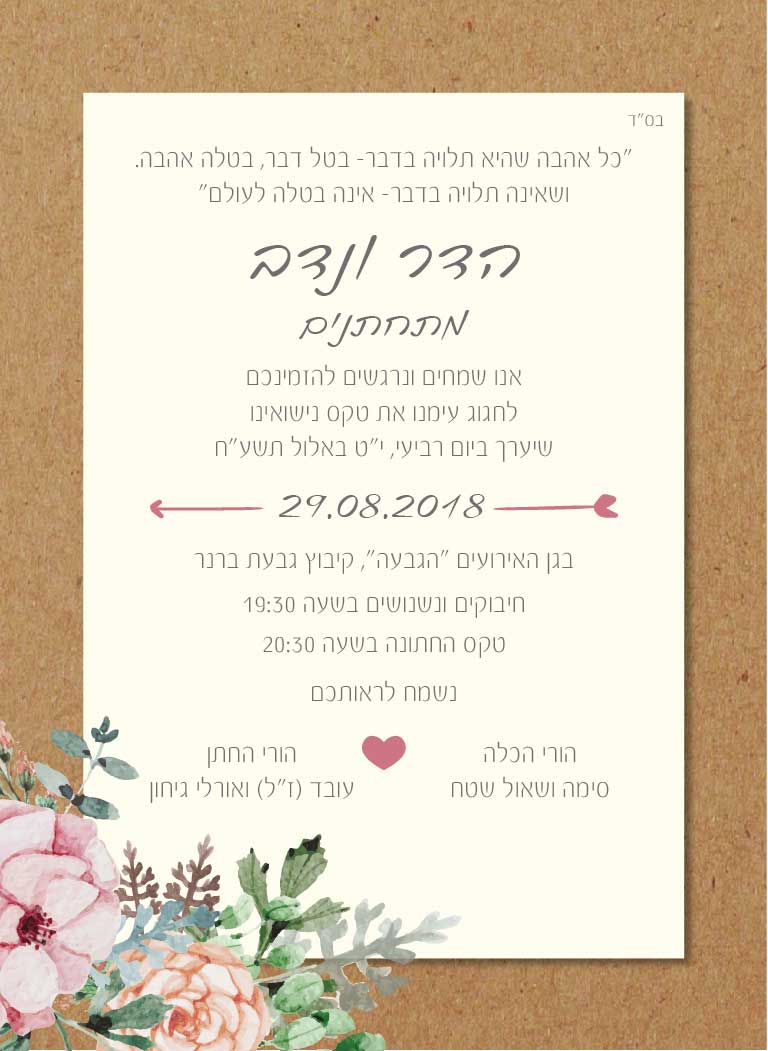 זמן הפקת הזמנות חתונה עד 3 ימי עסקים מאישר הגרפיקה*