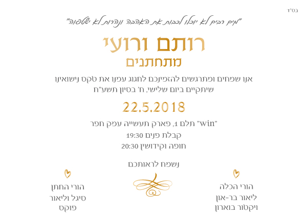 – בקשות מיוחדות שציינתם: בס”ד , ז”ל, הערות לבוש וכו’