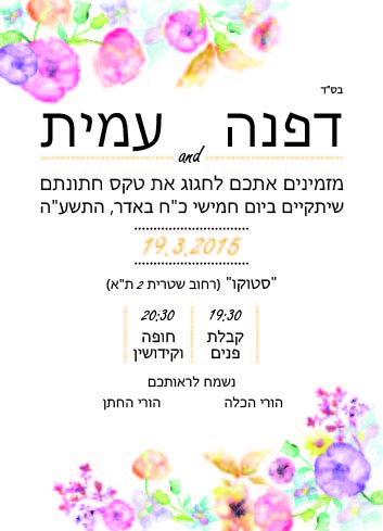 אנחנו מדפיסים את ההזמנות על נייר כרומו איכותי 300 גר’.ההדפסה דו-צדדית וצבעונית.המחיר כולל גם קובץ תמונה דיגיטלי לשליחה בוואטסאפ.לאחר מילוי כל הפרטים וביצוע הזמנה תקבלו מאיתנו סקיצה לאישור.