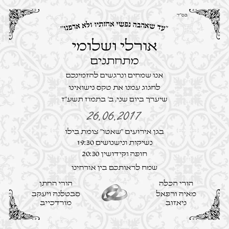 – בקשות מיוחדות שציינתם: בס”ד , ז”ל, הערות לבוש וכו’