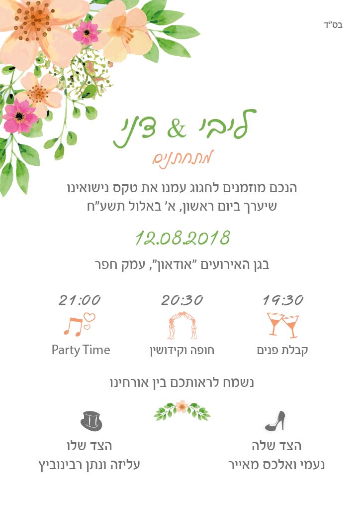 – בקשות מיוחדות שציינתם: בס”ד , ז”ל, הערות לבוש וכו’
