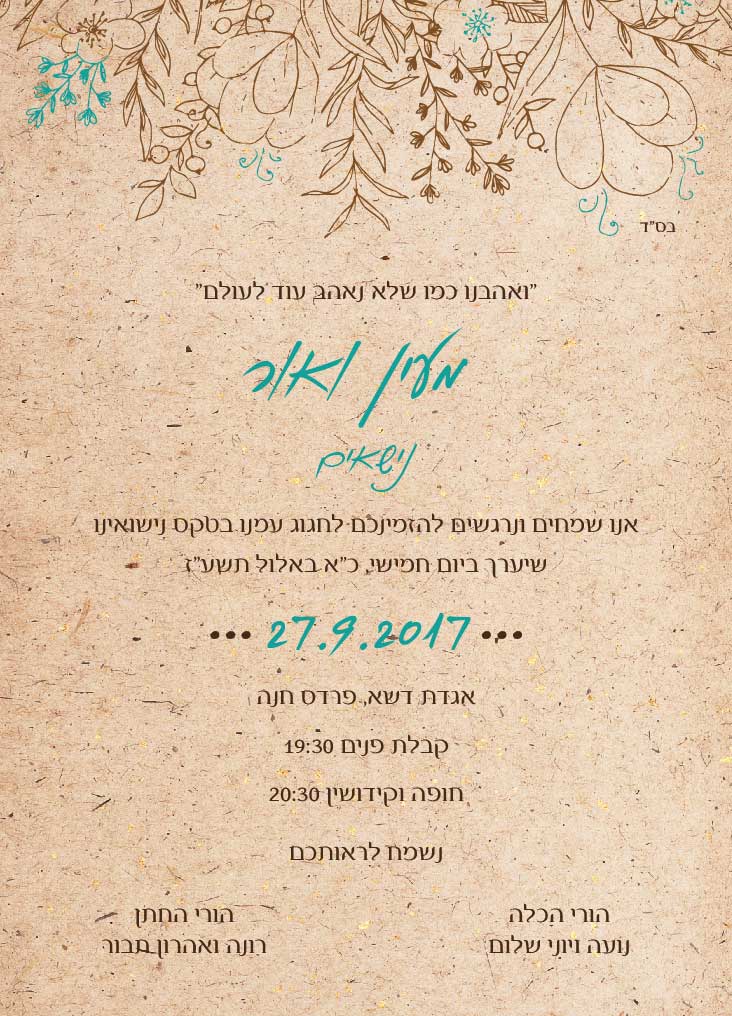 זמן הפקת הזמנות חתונה עד 3 ימי עסקים מאישר הגרפיקה*