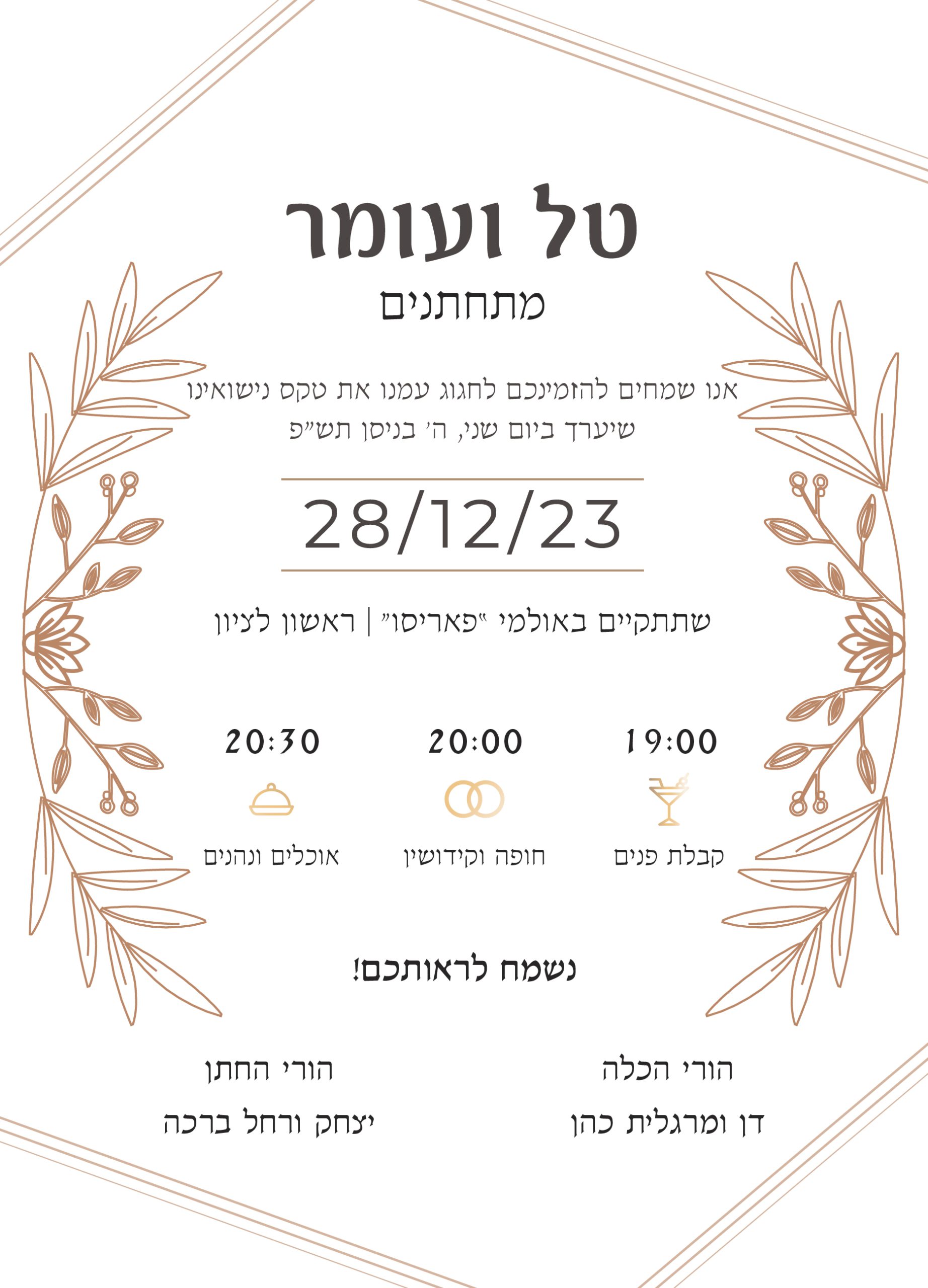 אנחנו מדפיסים את ההזמנות על נייר כרומו איכותי 300 גר’.