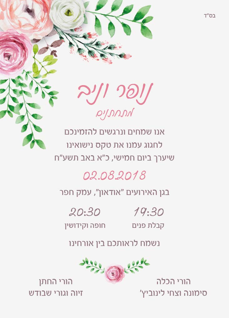 זמן הפקת הזמנות חתונה עד 3 ימי עסקים מאישר הגרפיקה*