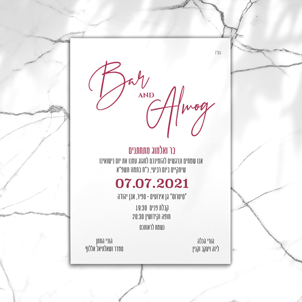 אנחנו מדפיסים את ההזמנות על נייר כרומו איכותי 300 גר’.