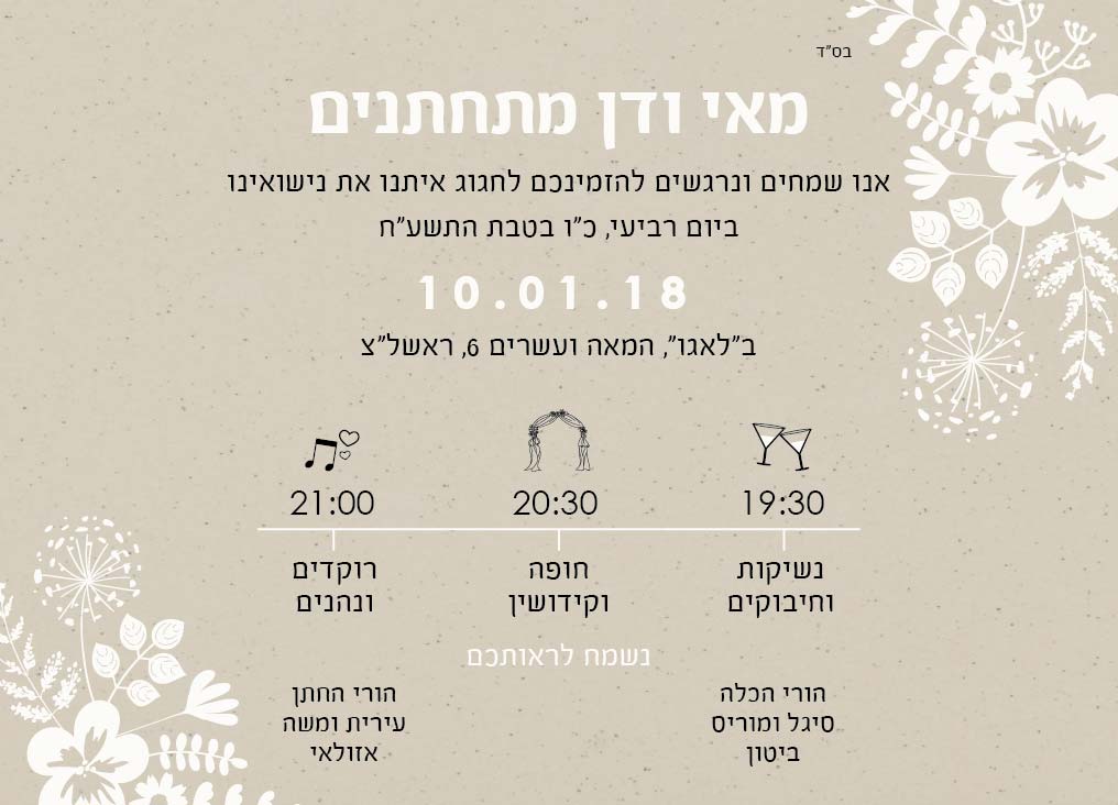 זמן הפקת הזמנות חתונה עד 3 ימי עסקים מאישר הגרפיקה*