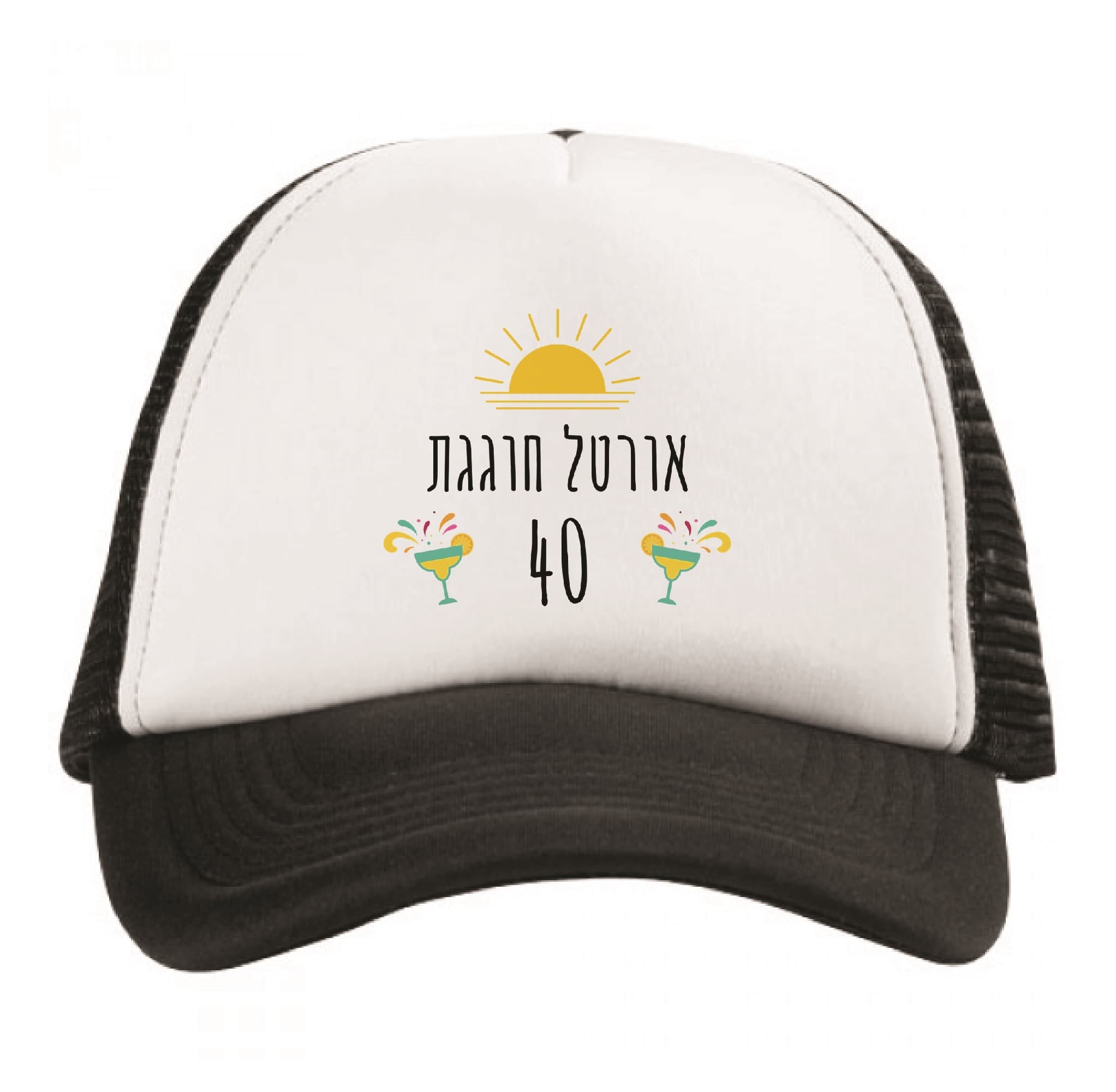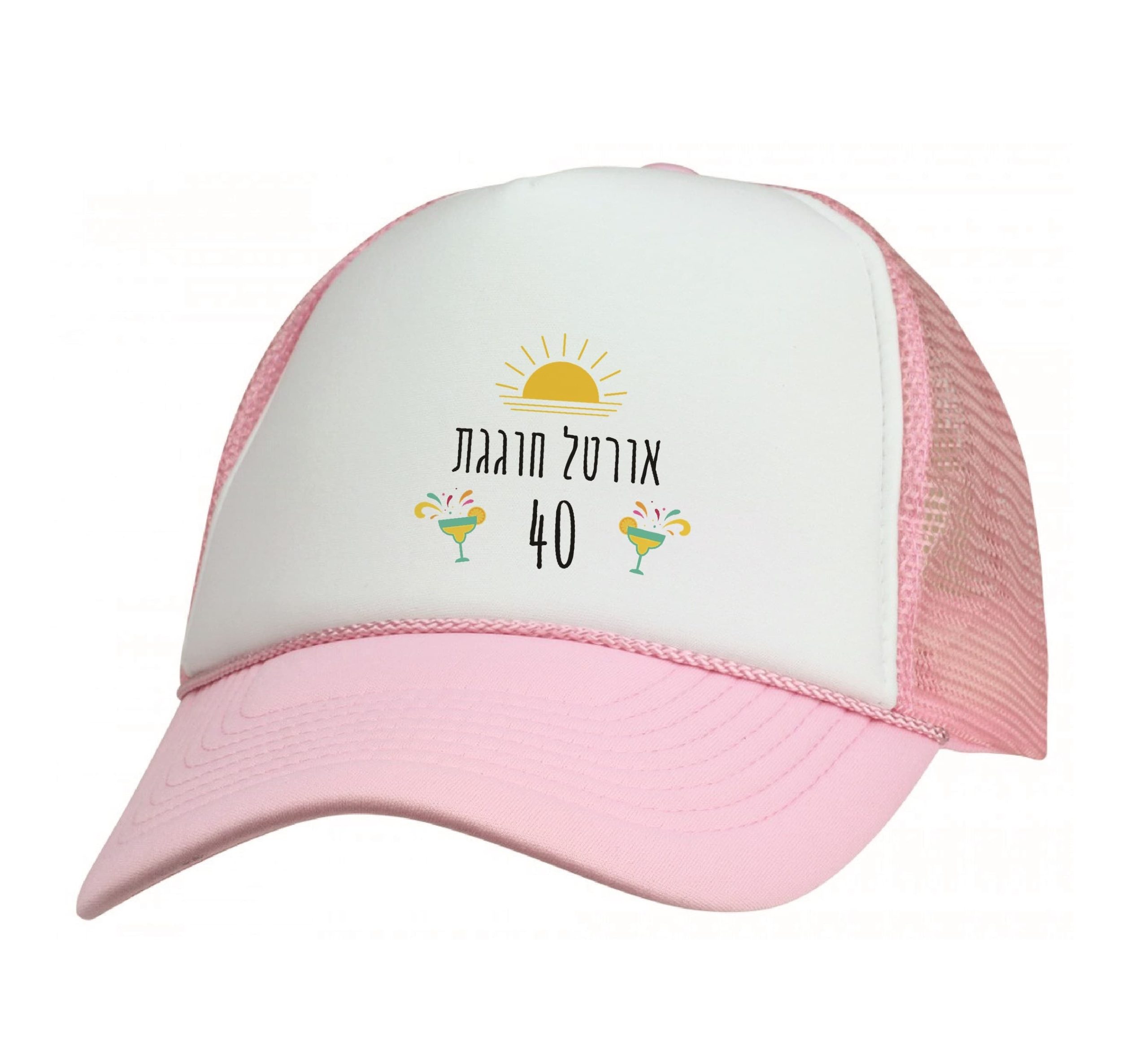 כובע מודפס עם כיתוב אישי בעיצוב מרגריטות