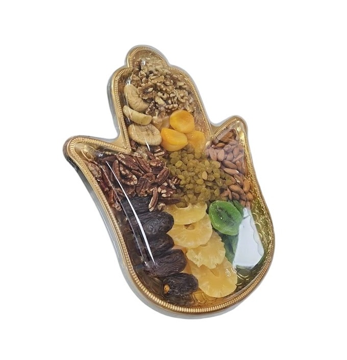 כלי פלסטי זהב עם מכסה בצורת חמסה