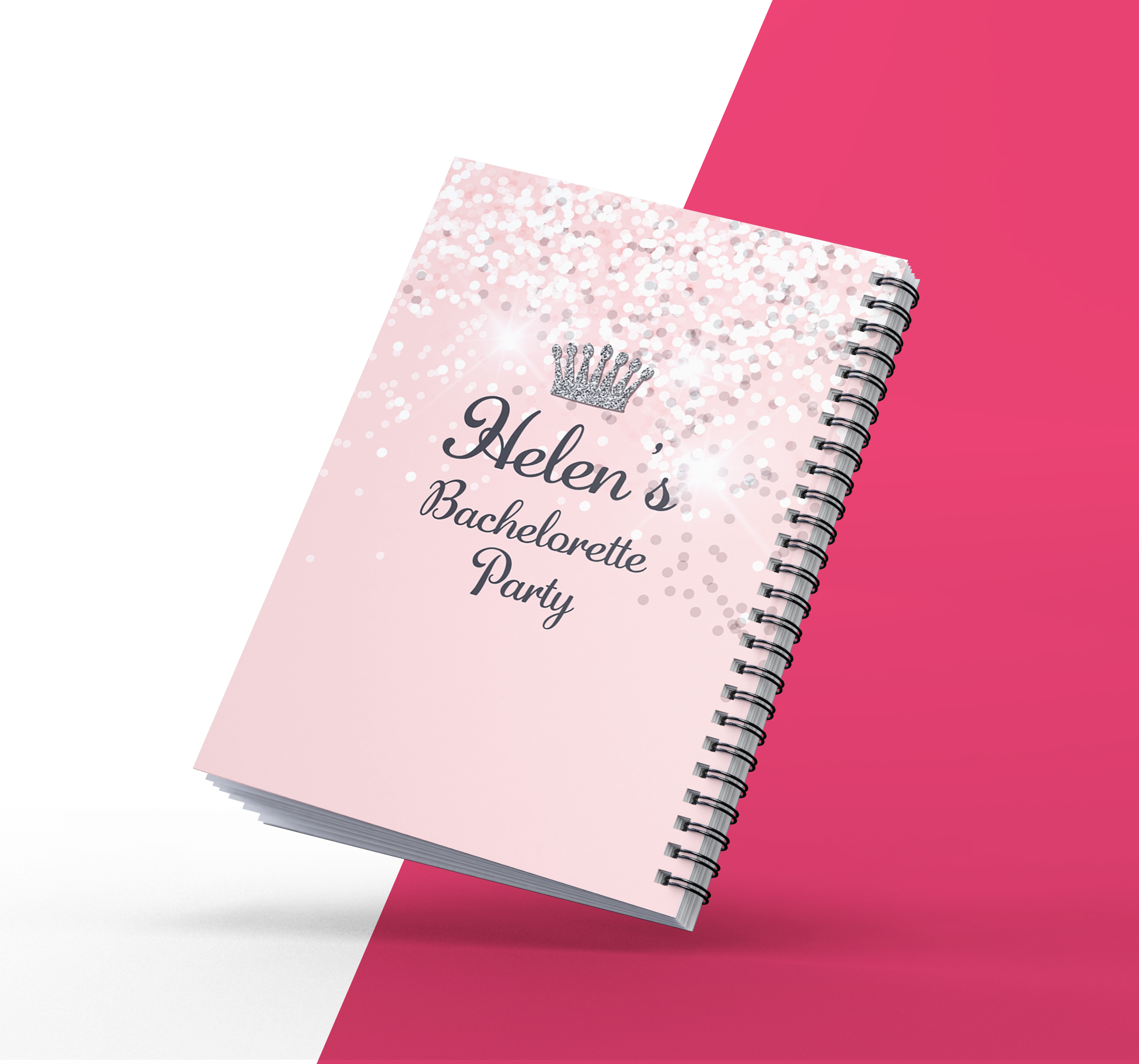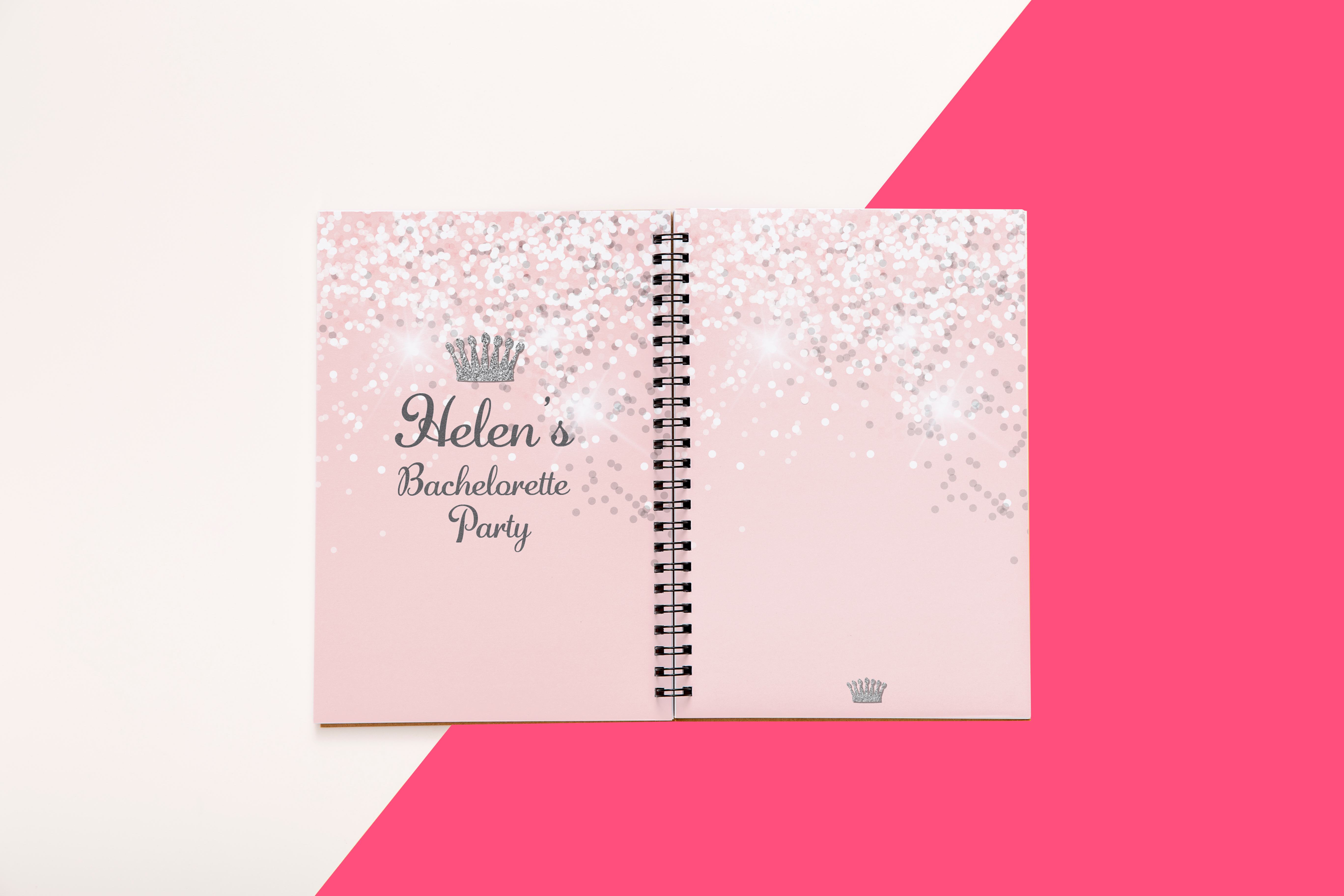 מחברת ממותגת בעיצוב מסיבת רווקות גליטר כסף עם כתר,