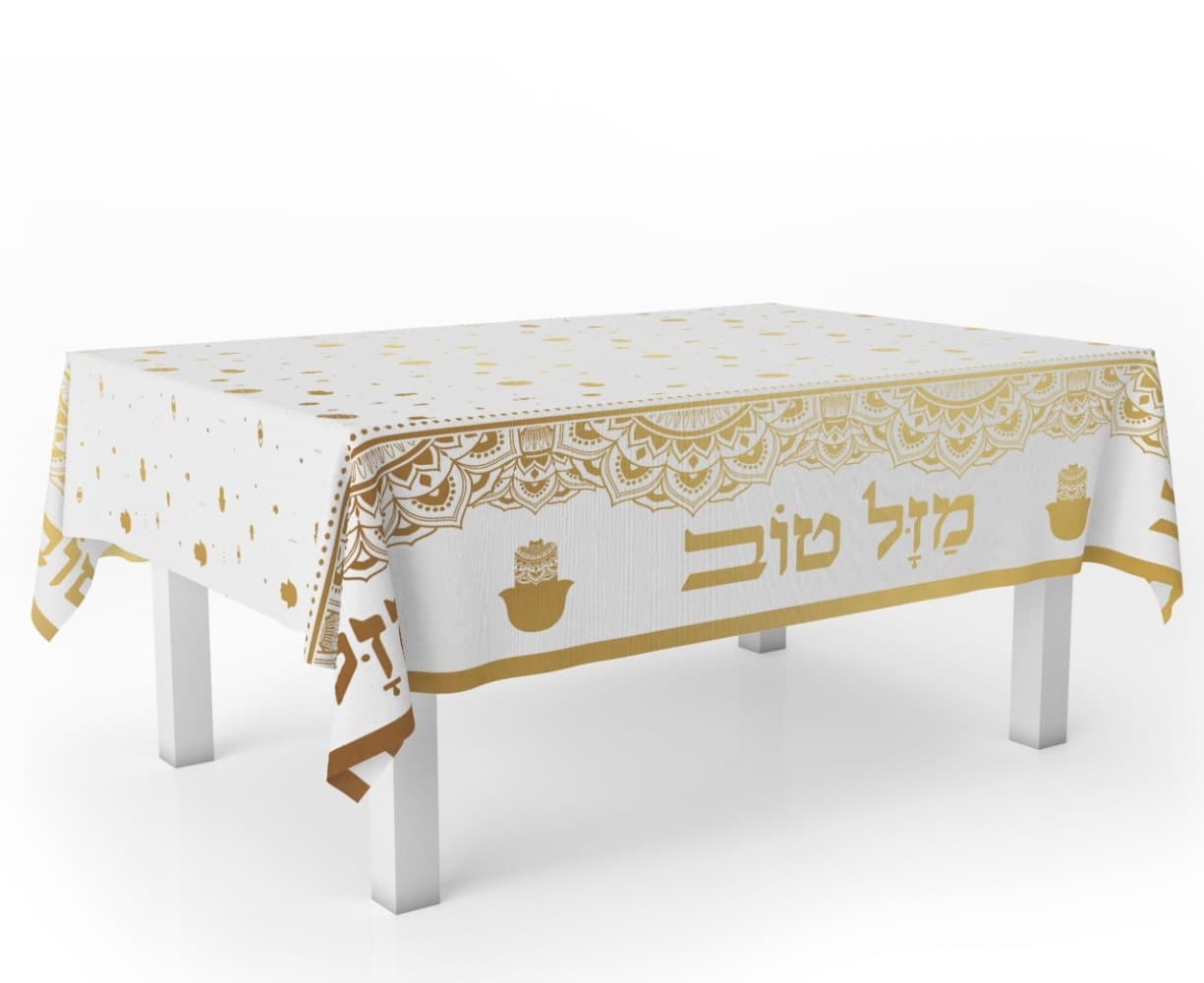 מפת שולחן לחגיגת חינה עם כיתוב מזל טוב