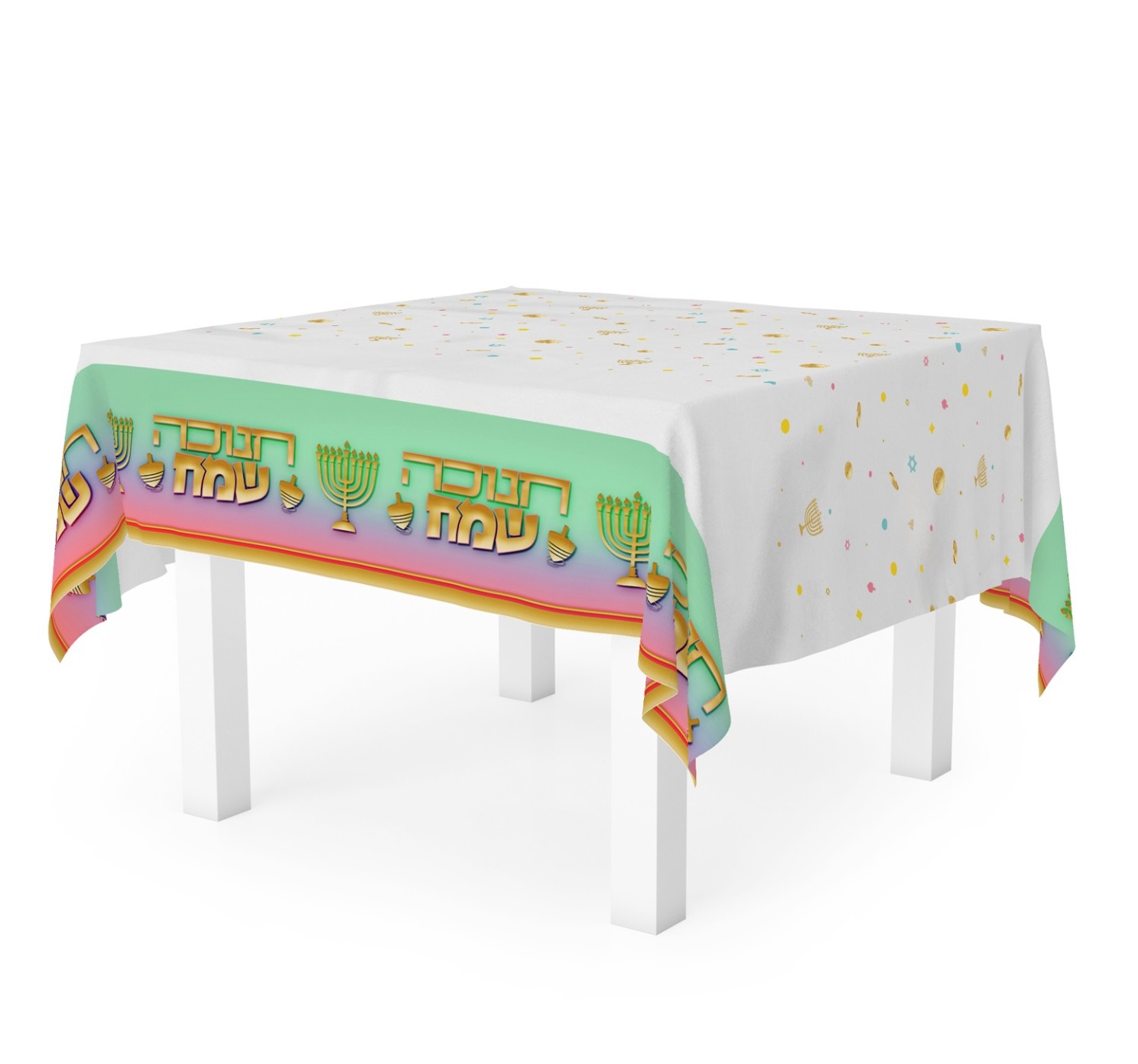 מפת שולחן חנוכה שמח בעיצוב אומברה זהב