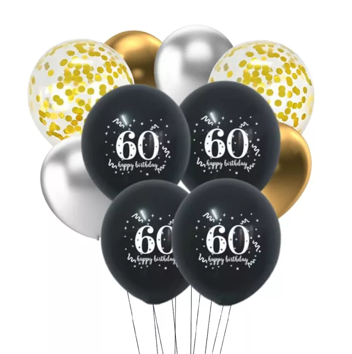 סט 10 בלונים לחגיגות יום הולדת 60