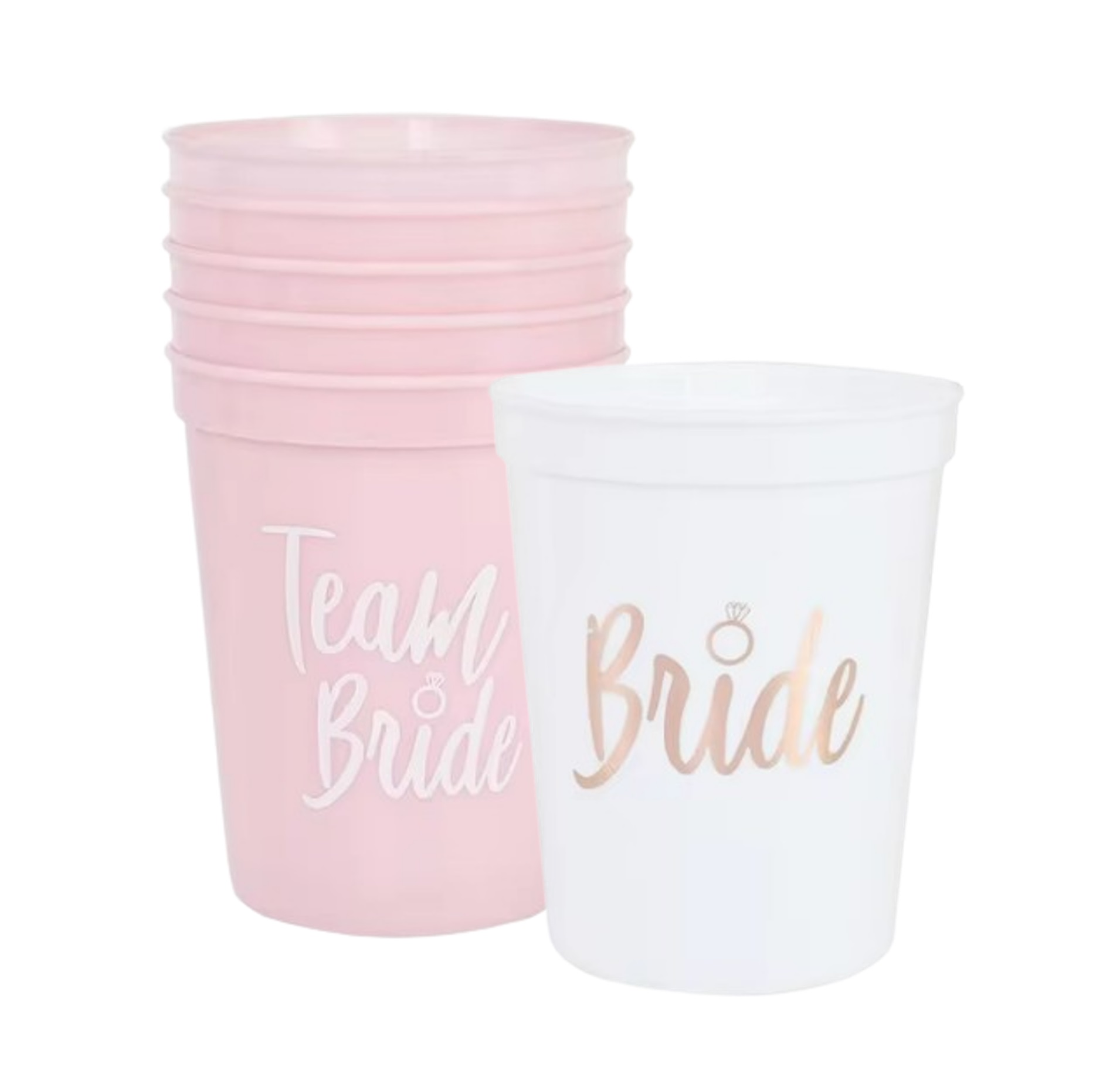 הכולל 5 כוסות ורודות עם כיתוב TEAM BRIDE