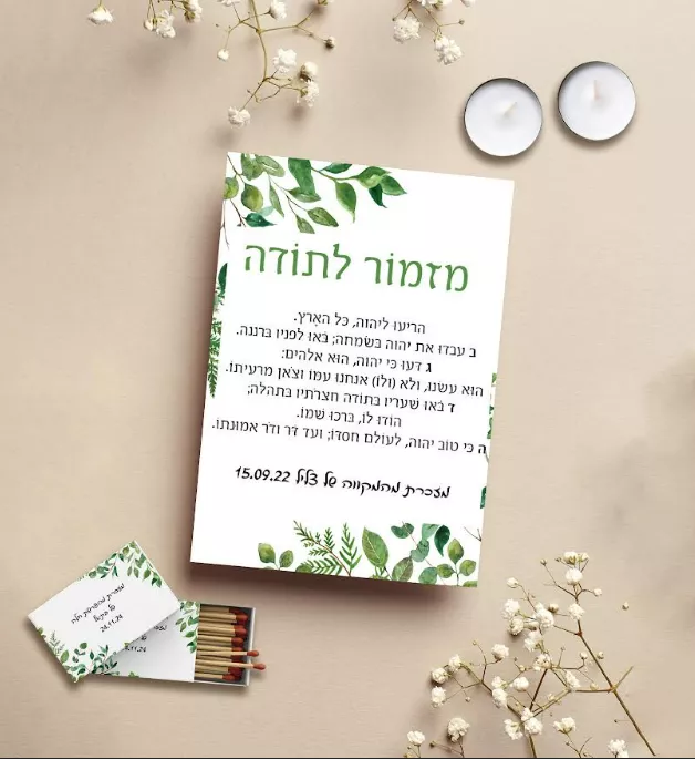 ניתן לשדרג עם תוספת של ספרון תהילים קטן בשקית אורגנזה.