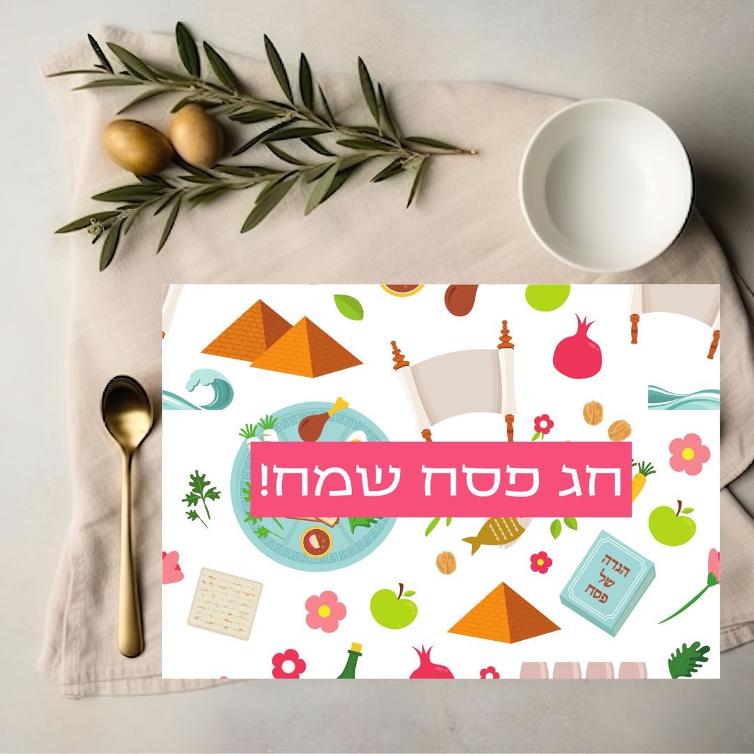 פלייסמנט בעיצוב חגיגי לפסח-סמלי החג
