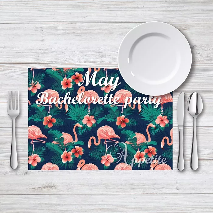 פלייסמנט מעוצב אישי עם רקע פלימנגו טרופי