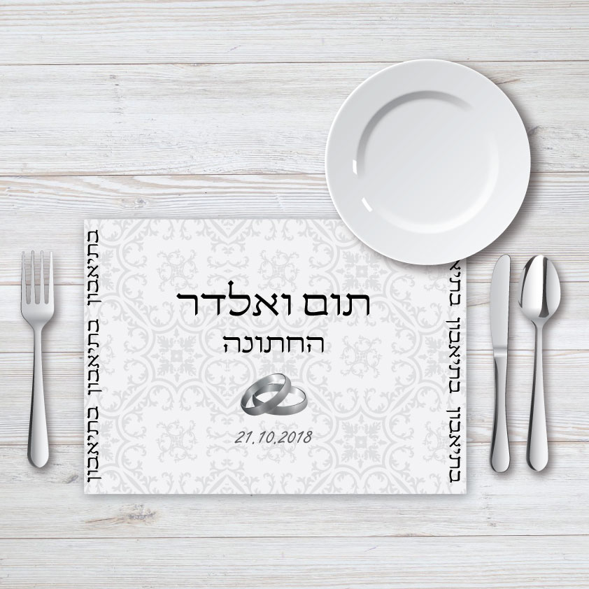 פלייסמנט מעוצב אישי עם רקע תחרה כסף וטבעות