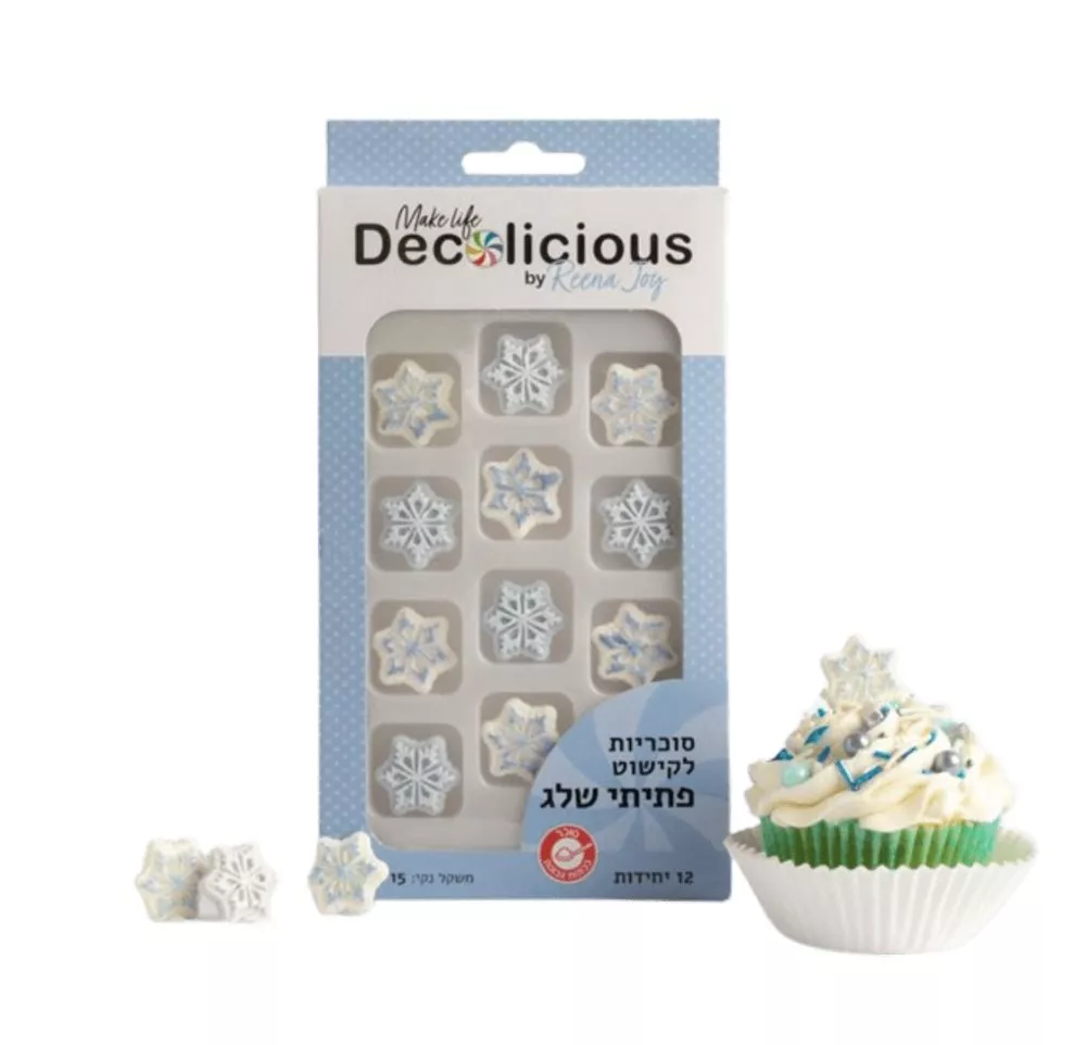 12 סוכריות עשוית מרויאל אייסינג בצורת פתיתי שלג.