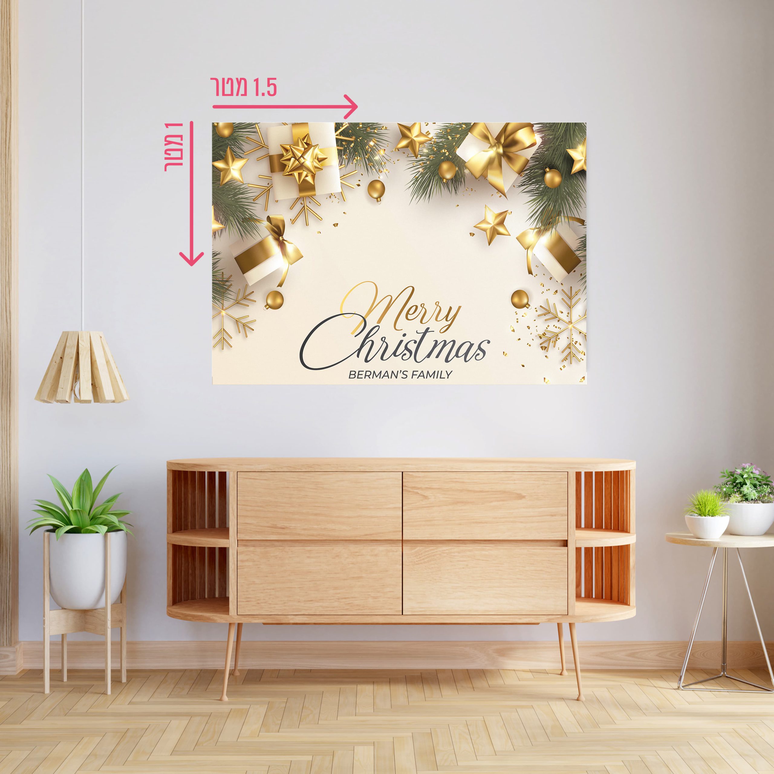 רקע קיר גדול 1.5*1 מטר- כריסמס בזהב