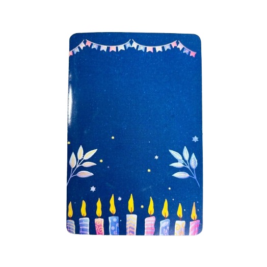 כרטיס שייקר בעיצוב חנוכיה עם שני מטבעות שוקולד