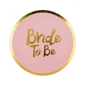 8 צלחות ורודות עם הטבעת Bride To Be בזהב
