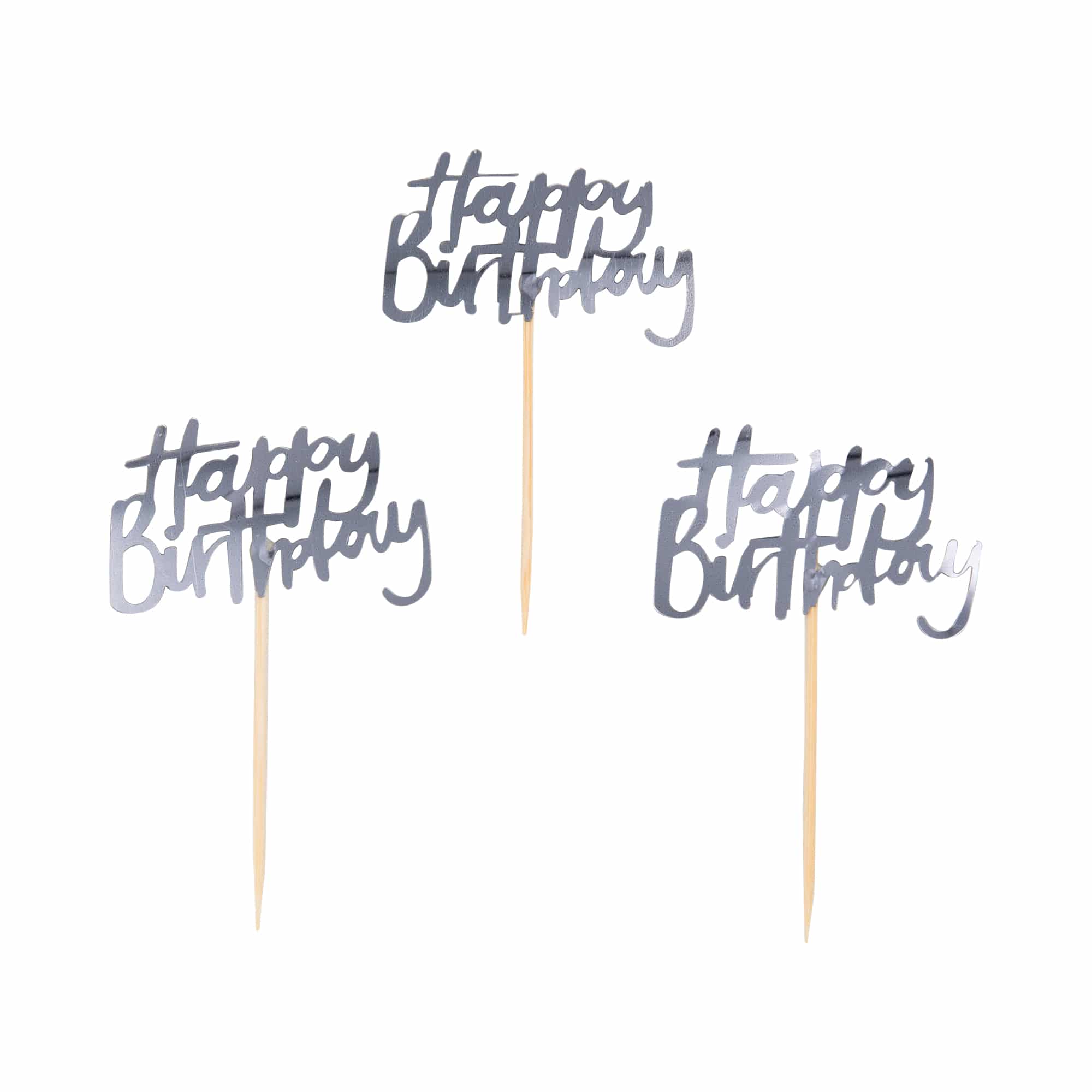 סט 8 קיסמים עם טופר כיתוב Happy Birthday