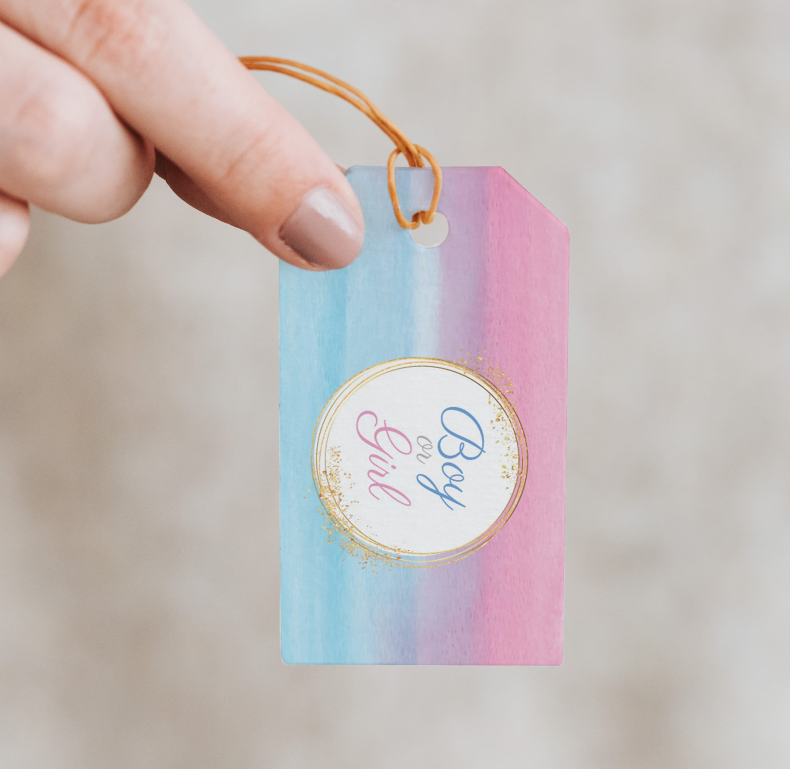 18 תויות לקשירה בעיצוב גילוי מין העובר צבעי מים