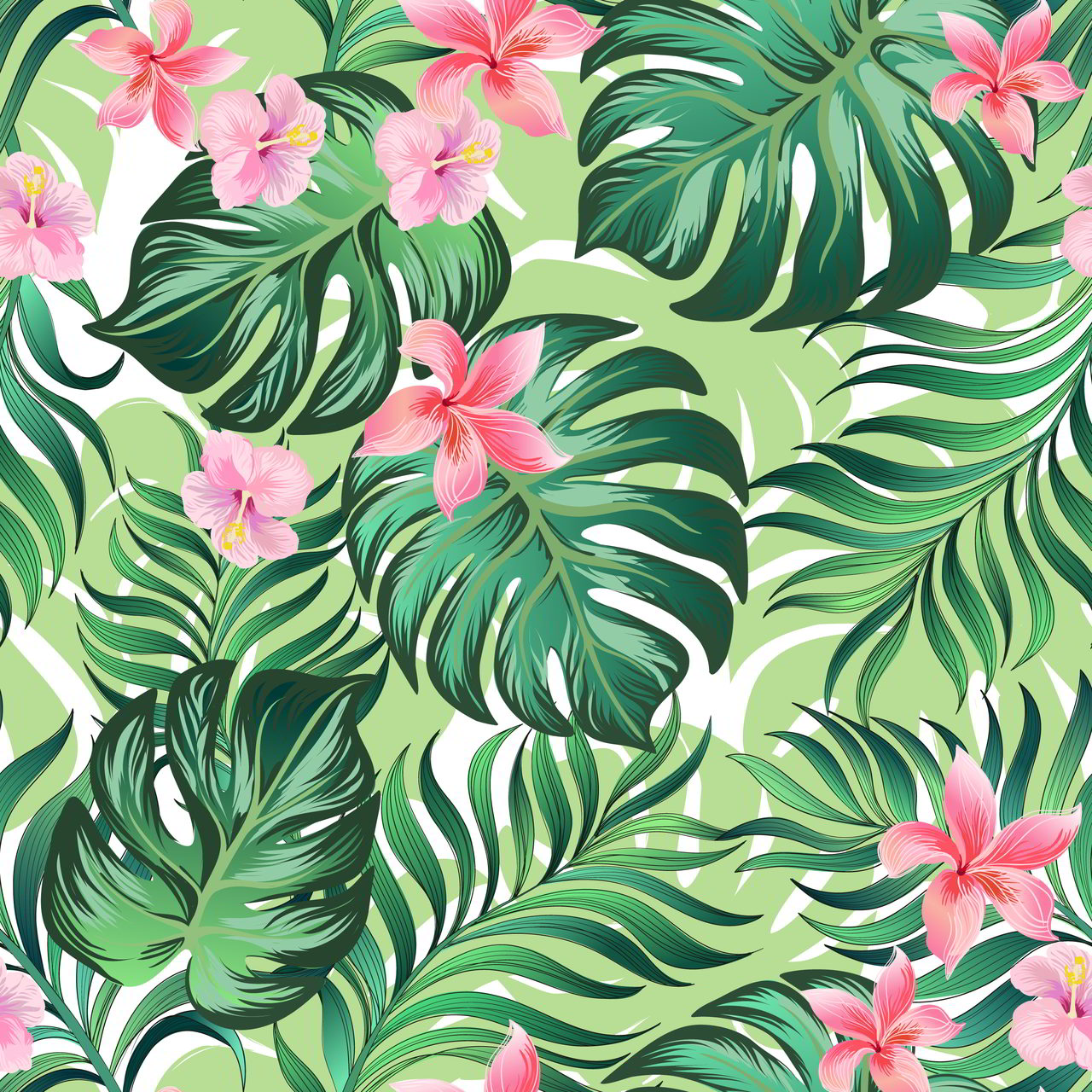 בעיצוב עלים טרופיים עם פרחים ורודים