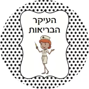 דף A4 המכיל 24 מדבקות עגולות איכותיות בקוטר 4 ס״מ בעיצוב – העיקר הבריאות