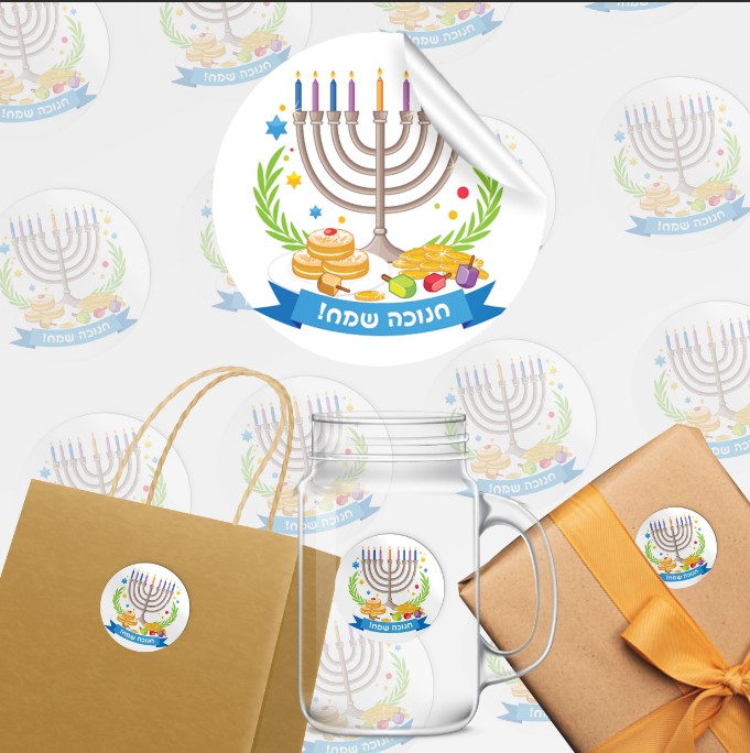 24 מדבקות עגולות בעיצוב חנוכה צבעוני דגם 2