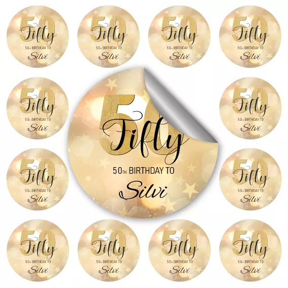 24 מדבקות עגולות בעיצוב יום הולדת 50 כוכבים