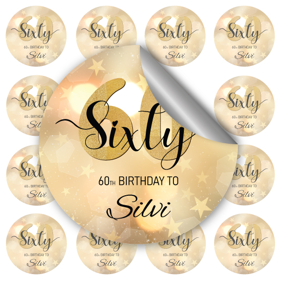 24 מדבקות עגולות בעיצוב יום הולדת 60 כוכבים