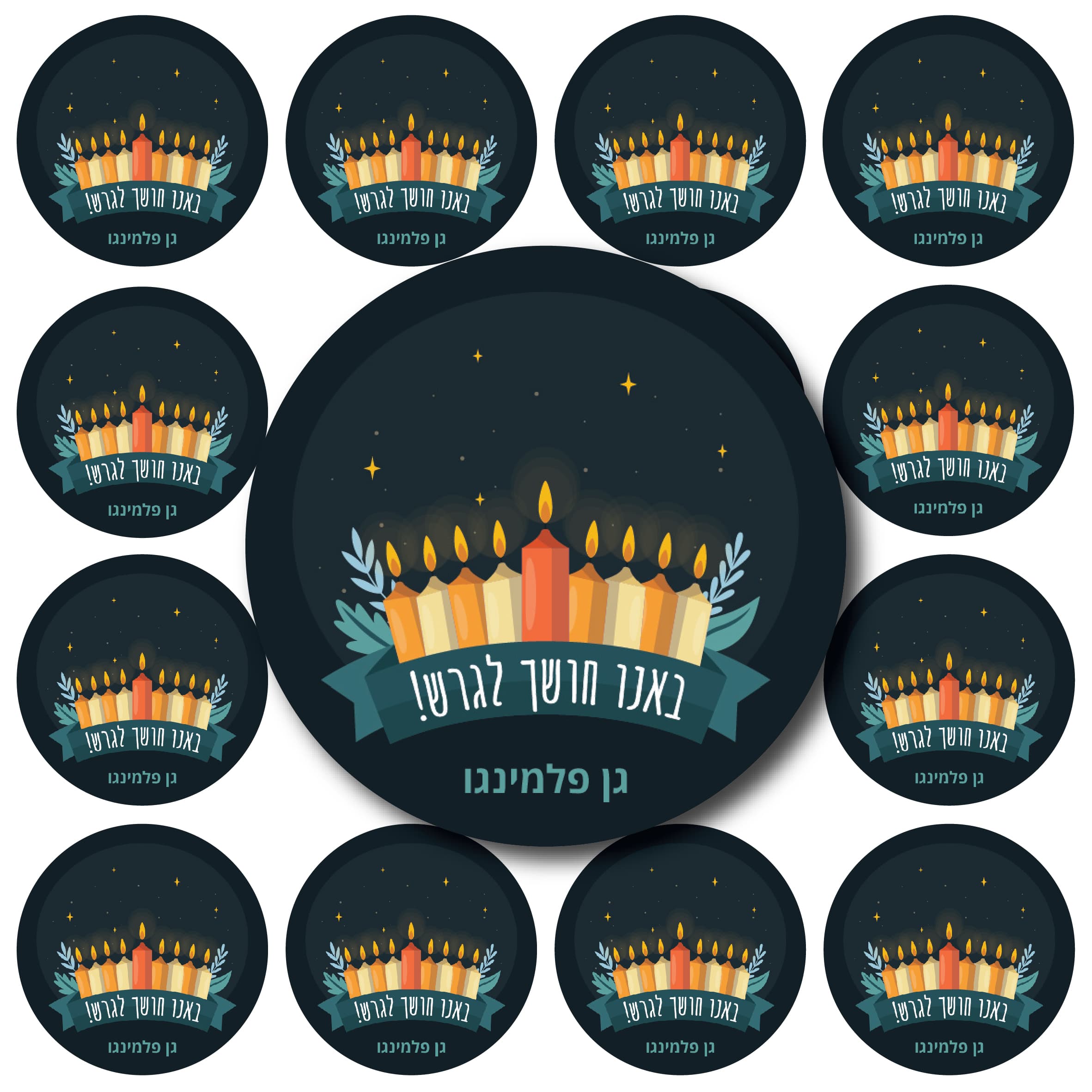 24 מדבקות לחג חנוכה בעיצוב באנו חושך לגרש