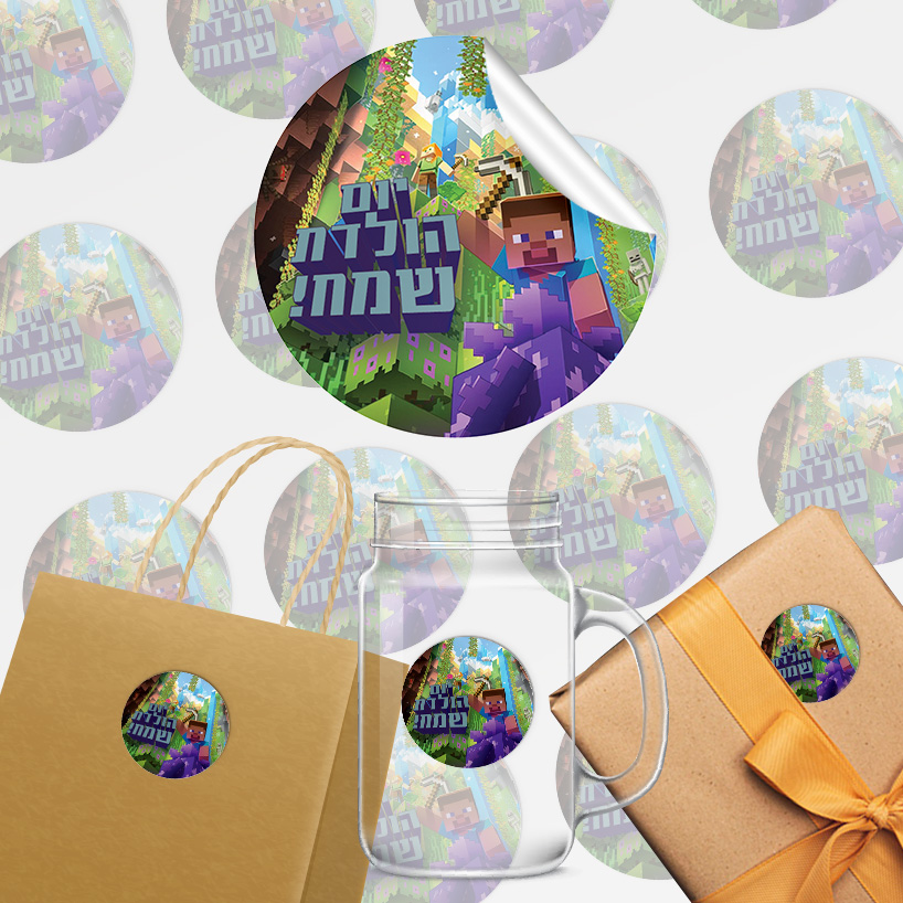 24 מדבקות עגולות בעיצוב מיינקראפט