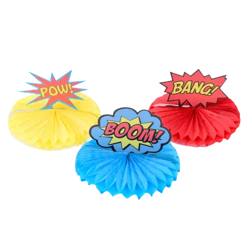3 מרכזי שולחן בעיצוב קומיקס גיבורי על